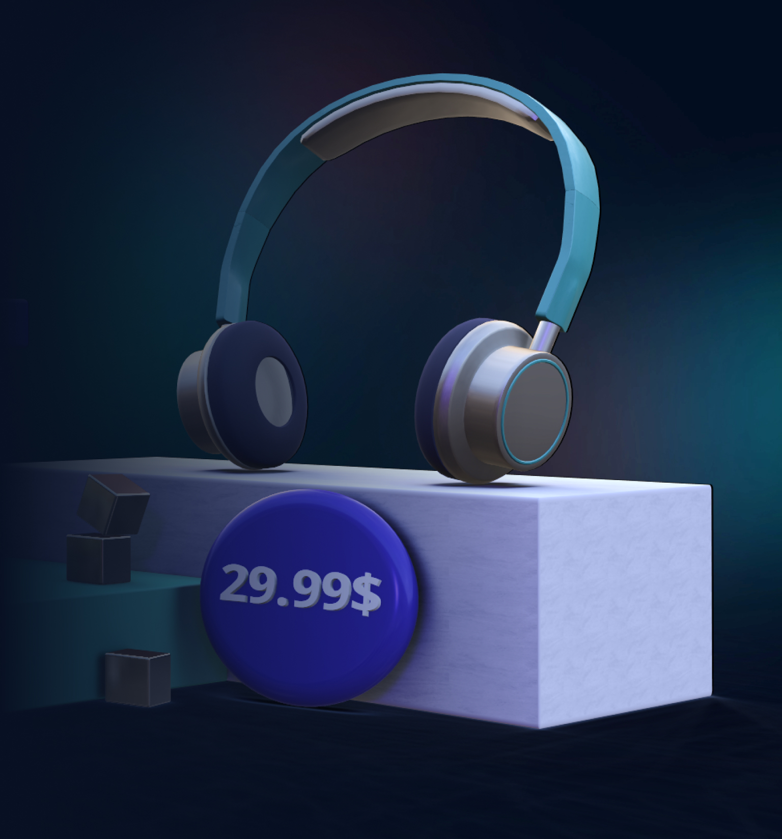 Choose from over 100 000 3D models, add price tags and text and completely customize your designs.